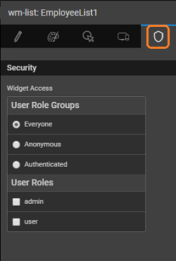 3. You will find that the Widget Access property is set with the User Role Group as Everyone by default.