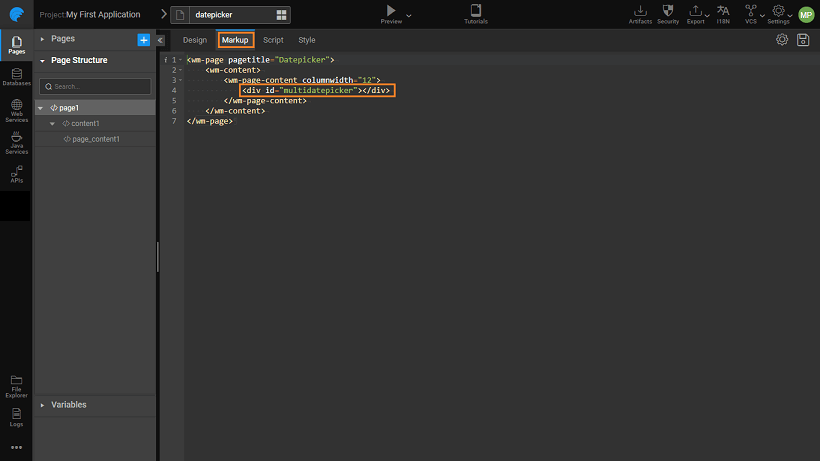 • On the main page mark the position for the display of the date-picker using a div tag.