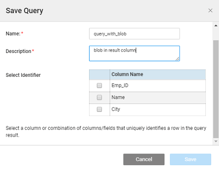 - Queries returning a PAGINATED response containing Blob field should provide Identifier while saving the query