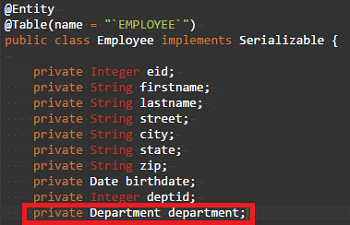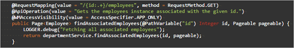 • Method Name: findAssociatedEmployees (employee foreign key for department entity)