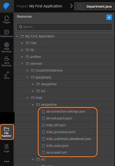 • servicename_published_datamodel.json: contains database schema information. It plays a major role while updating DB changes. Whenever you do manual changes in the database you have to re-import to update this file.