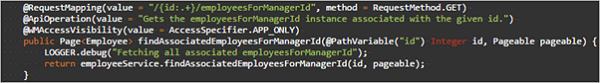 • Method Name: findAssociatedEmployeesForManagerId (foreign key)