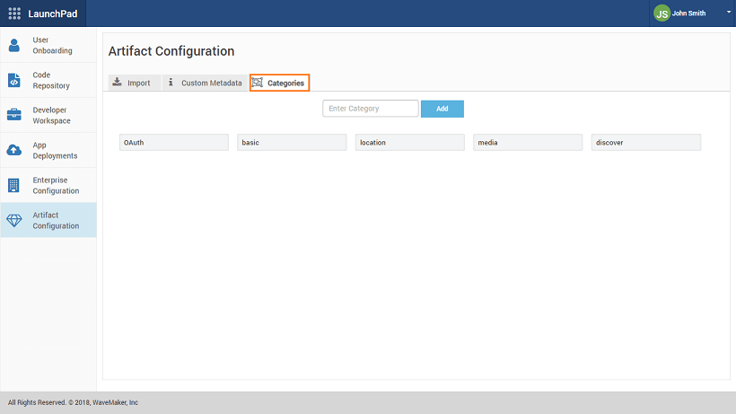 • Categories - As defined by the publisher at the time of developing and/or publishing the Artifacts.