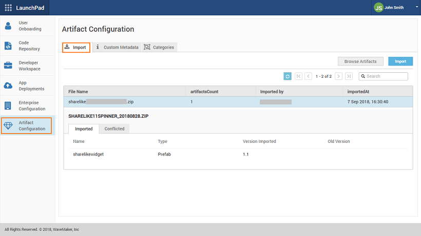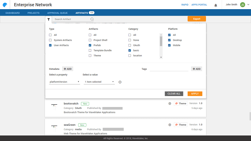 Artifact Repository is a collection of artifacts or resources used across application development lifecycle in WaveMaker platform. It allows for easy exploration and discovery of Artifacts available to the developer network. These artifacts include: