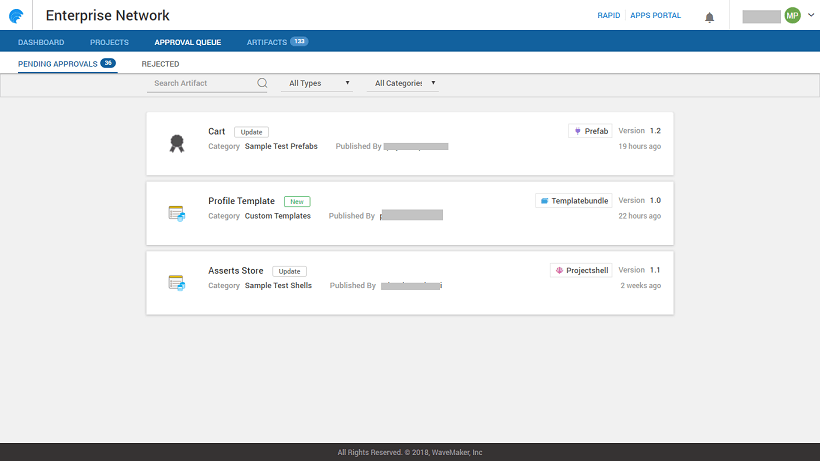 • Rejected: Rejected by the EDN Admin, the developer can rectify/modify the artifact and re-publish it.