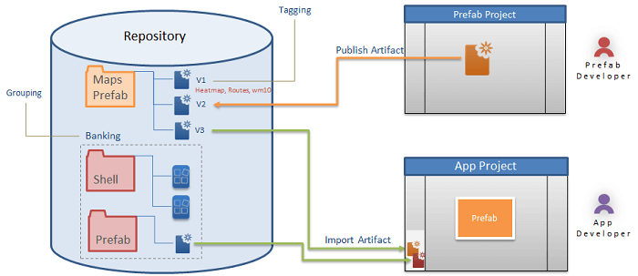Prefab is developed from the Project Workspace, similar to any other app development, and then made available to other developers. Publishing states for a Prefab include: