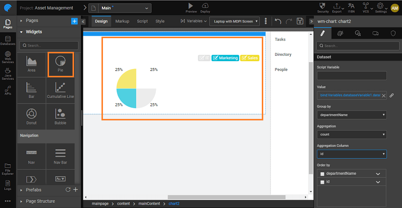 We will see how to use this functionality using the in-built HSQL Database which ships with WaveMaker Studio. Let us plot the number employees working in each city from the database.