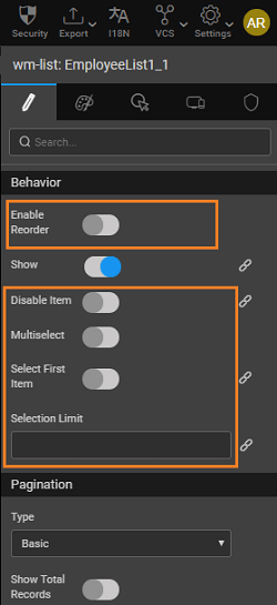 List - Behavior Settings