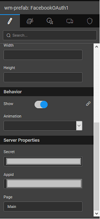 4. In the Properties Panel, under SERVER PROPERTIES, enter the Appid, Page, Scope and Secret in their respective fields.