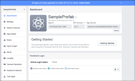 In order to use the Facebook OAuth prefab, please follow the below steps: Disclaimer: The screenshots from the FaceBook website were current at the time of writing this document, the actual screens might differ.