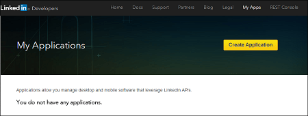 1. Log on to https://developer.linkedin.com/ and enter your credentials. LinkedIn Developers page is displayed.