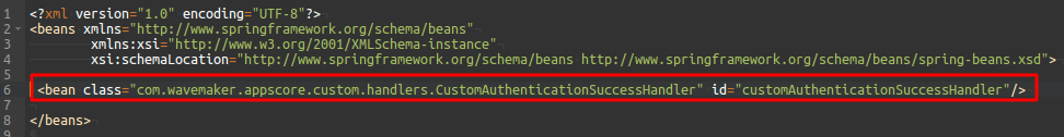 <bean class="com.wavemaker.appscore.custom.handlers.CustomAuthenticationSuccessHandler" id="customAuthenticationSuccessHandler/>