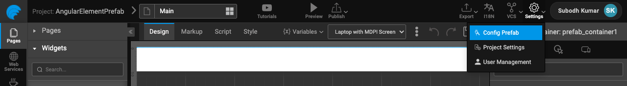 • Open the markup of Main page of Prefab and add the below code to use poster-widget-angular Web Component in the page markup.