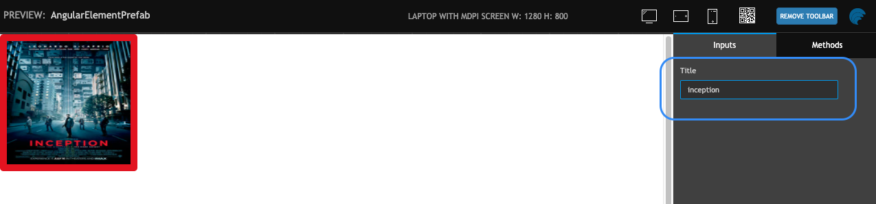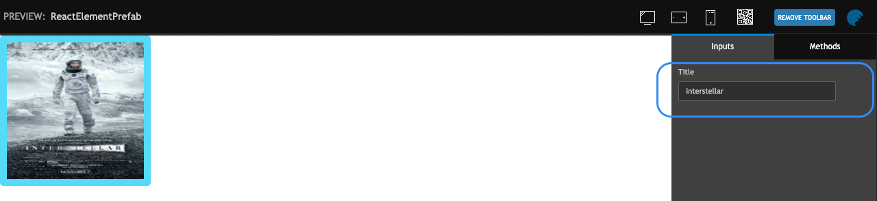 • Now test the Prefab using Preview option again. Try with updating the title value in Inputs section of Properties. The Web Component should update accordingly.