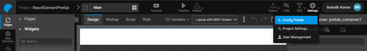 • Inorder to communicate with web components, Prefab has an option called Properties under Prefab Configurations as shown below.