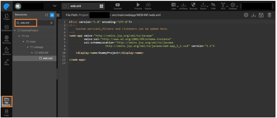 1. Go to File Explorer and search web.xml file.