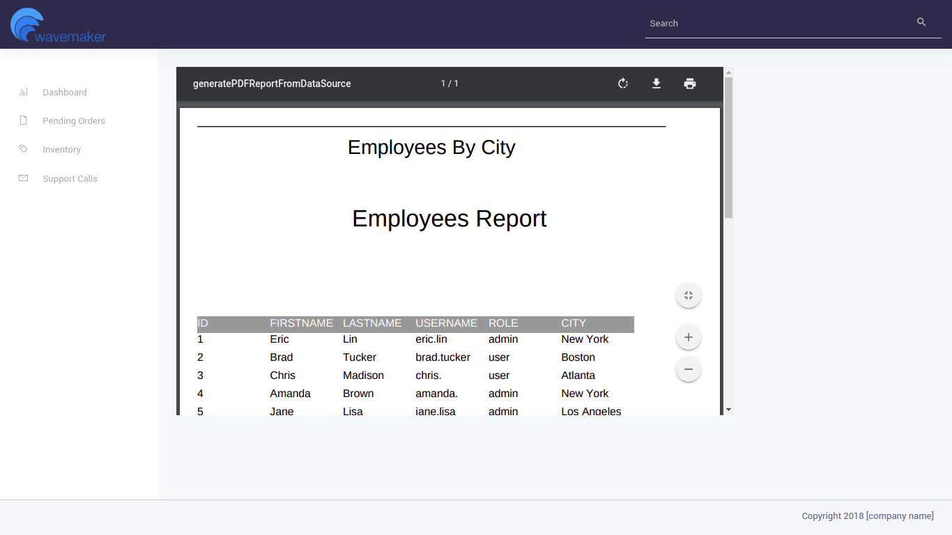 We can generate the Jasper Reports using various data sources in WaveMaker projects. This document will present the data base and Api data as the datasources.