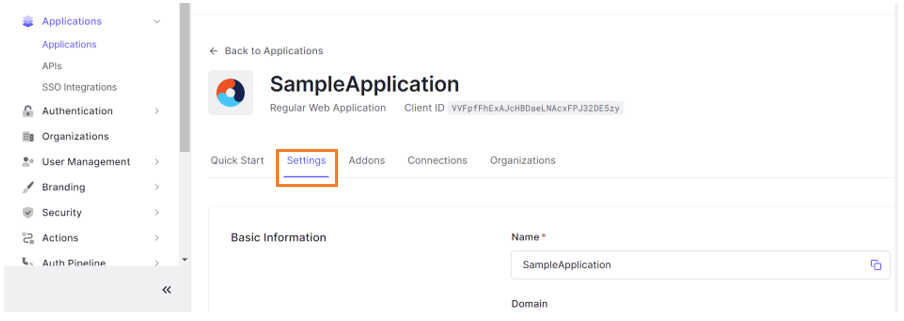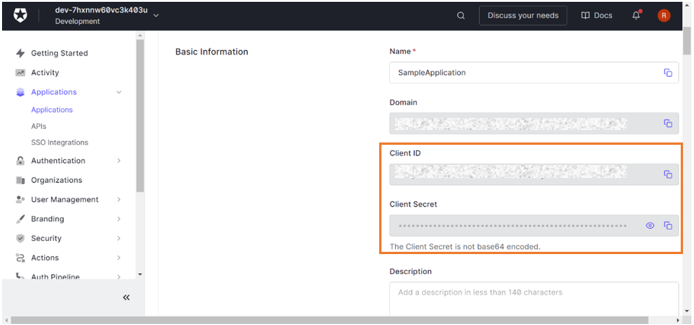 1. Fetch the Client Id and Client Secret available in Basic Information section and enter it in WaveMaker's security configuration page.