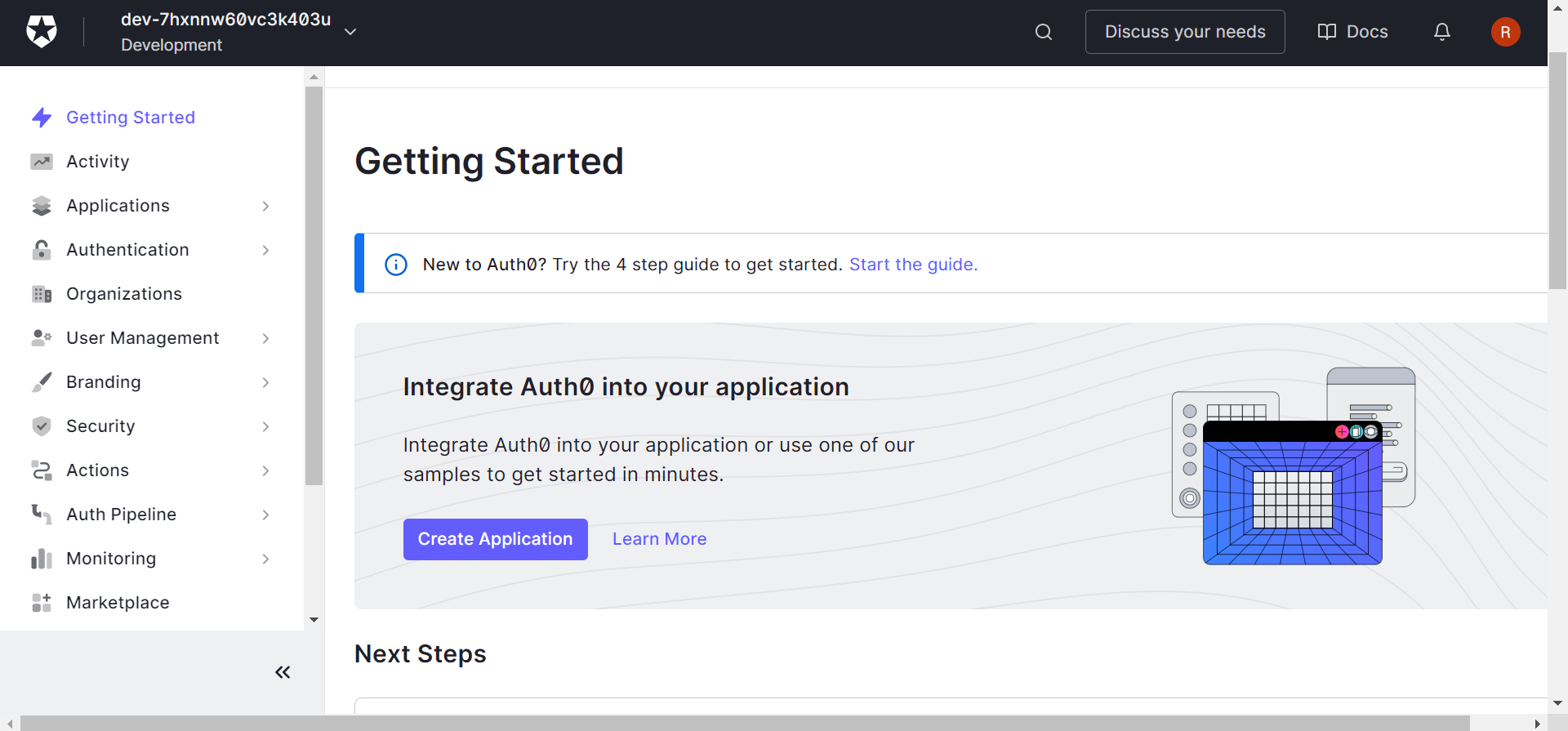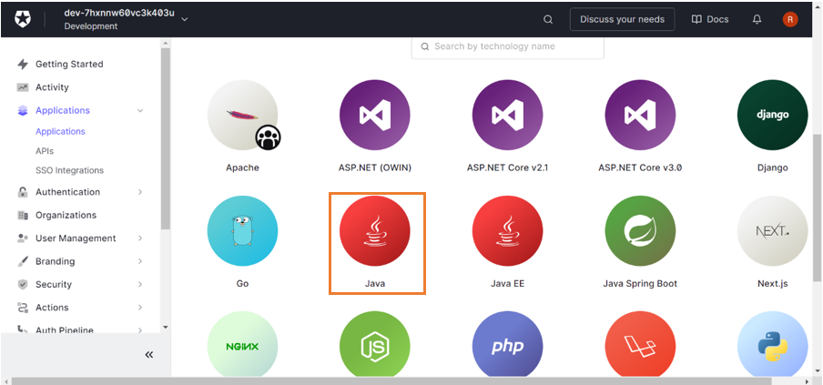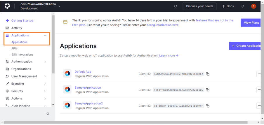 Below are the steps to create an application in Auth0 Developer.