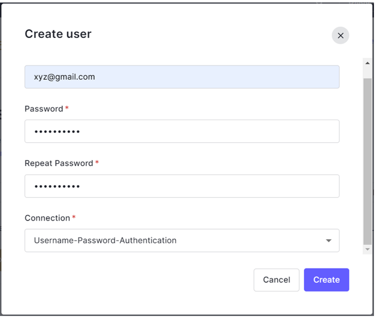 1. Click Create User. Enter email address and password and save the details to create a new user.