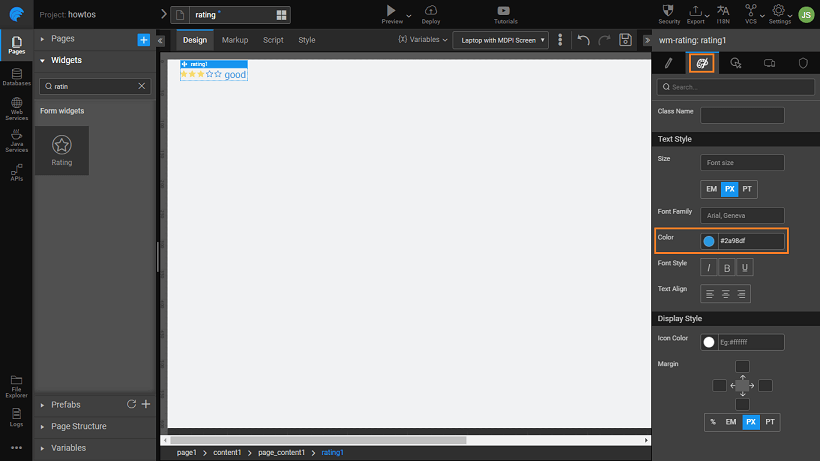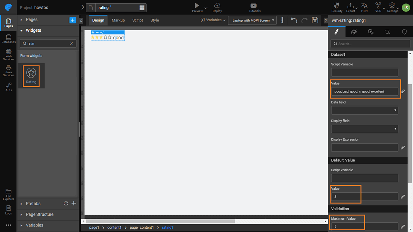 1. Drag and drop a rating widget on the canvas.