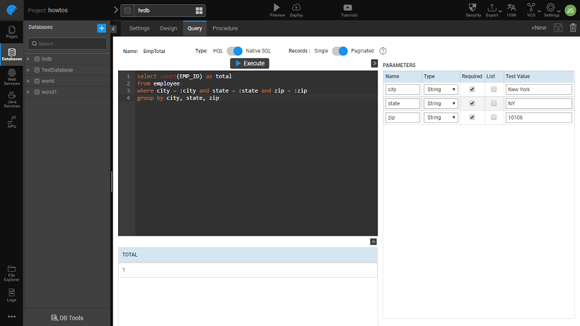 • We will be writing a query which takes city, state and zip as input parameters and returns the total number of employees from that place.