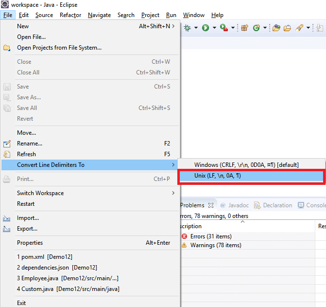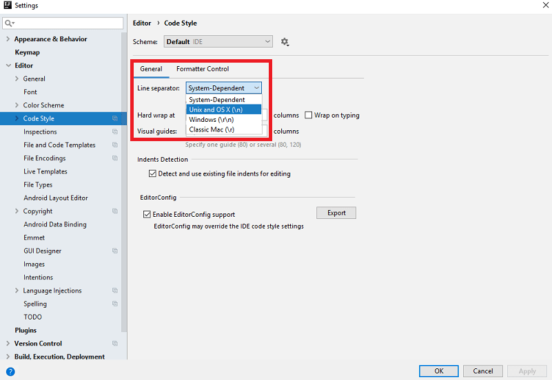If you are using any IDE or programming editor of your choice, make sure to change the line separator or delimiter to Unix (\n). For example: In intellij IDEA :- From the code Style panel, set the Line Separator field property from system-dependent to unix-style.