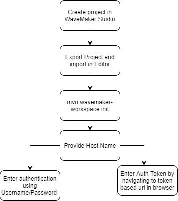 • Token - For this, you need to have an active WaveMaker session. Use the URL https://www.wavemakeronline.com/studio/services/auth/token to obtain token value and enter it at the prompt. Do not logout of the WaveMaker session till you complete the synchronization.