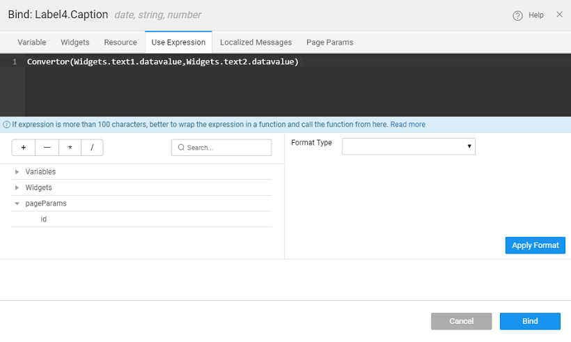 • Showcases how to use the Binding Dialog Use Expressions tab to code JS expressions like