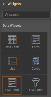 1. Set the data source that the Live Form will be working on. This takes the form of a Live Variable or a selected item from a Widget like a List or a Data Table.