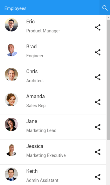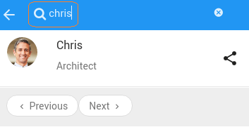 1. Now, filter employee ‘Chris’ by typing ‘chris’ in search text box. That’s how search widget on mobile navbar can be used.