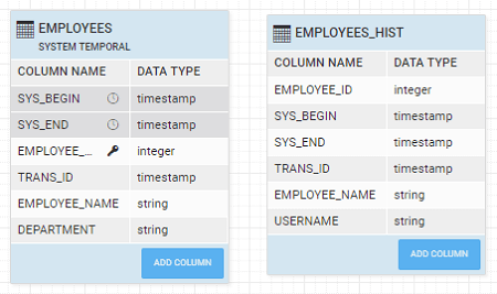 We are using the following DB2 Employees schema with System Time defined: