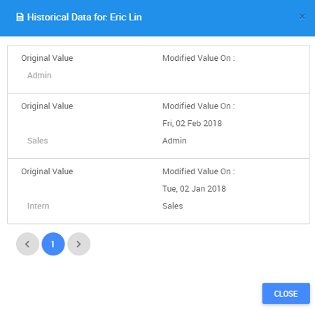 • Preview the page, click the View Details for any Employee and the dialog with Historical data will be displayed