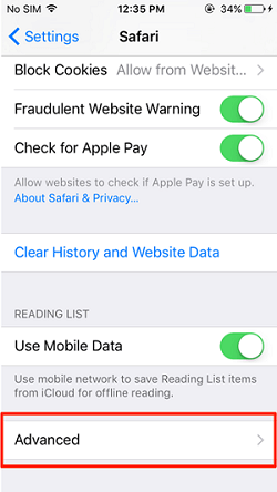 - Go to Advanced and check on ‘Show Develop Menu in menu bar’