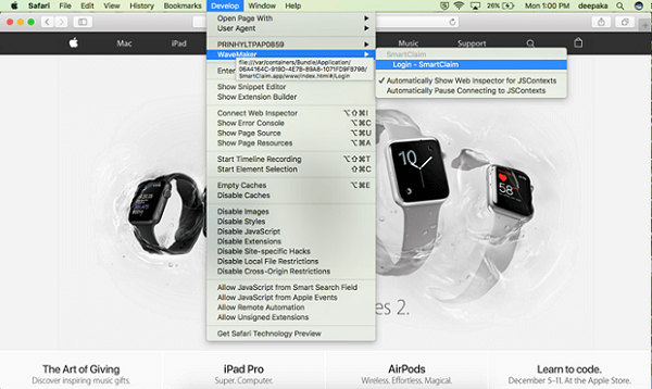- Open Safari in a MacBook, and click on ‘Develop’ menu.