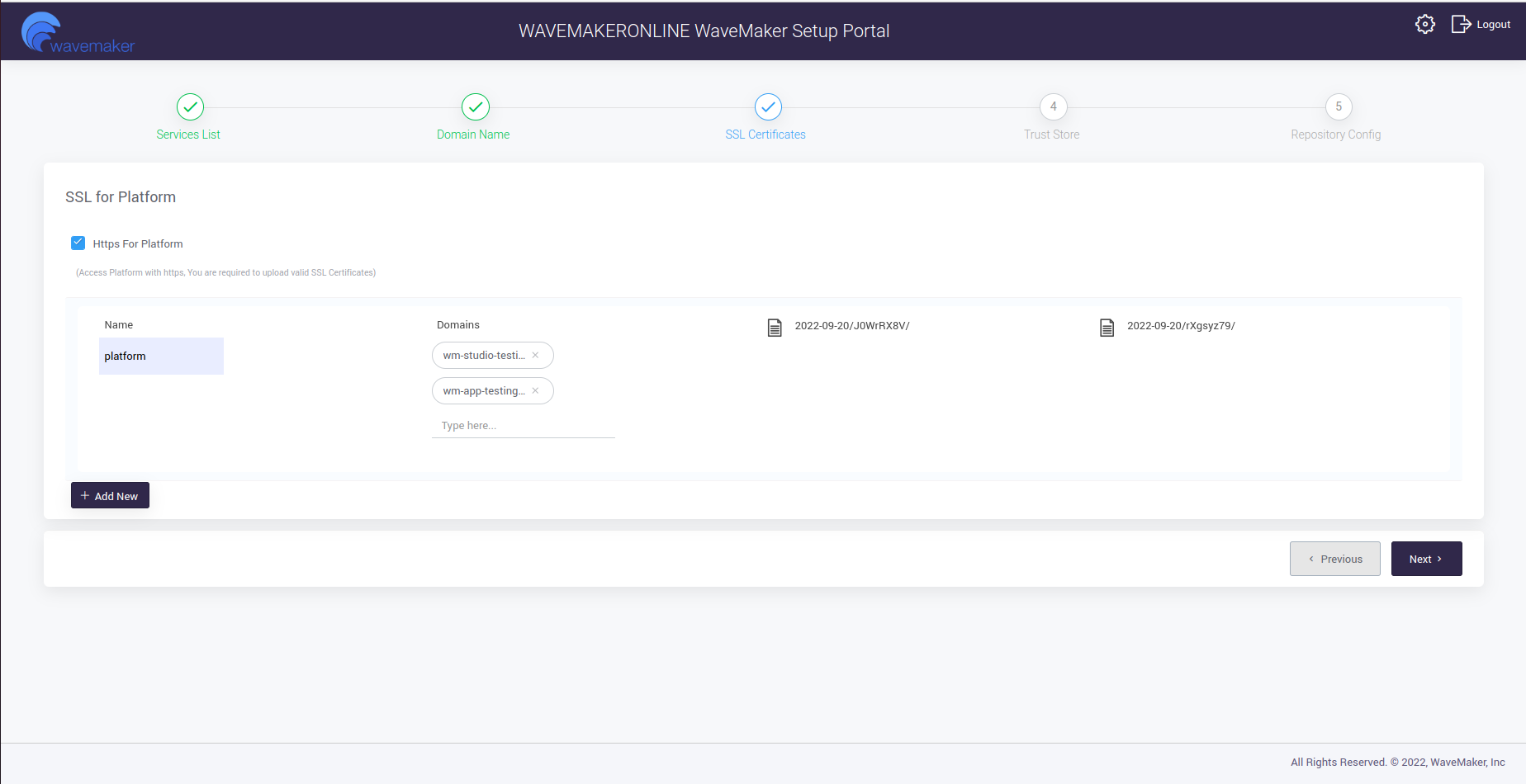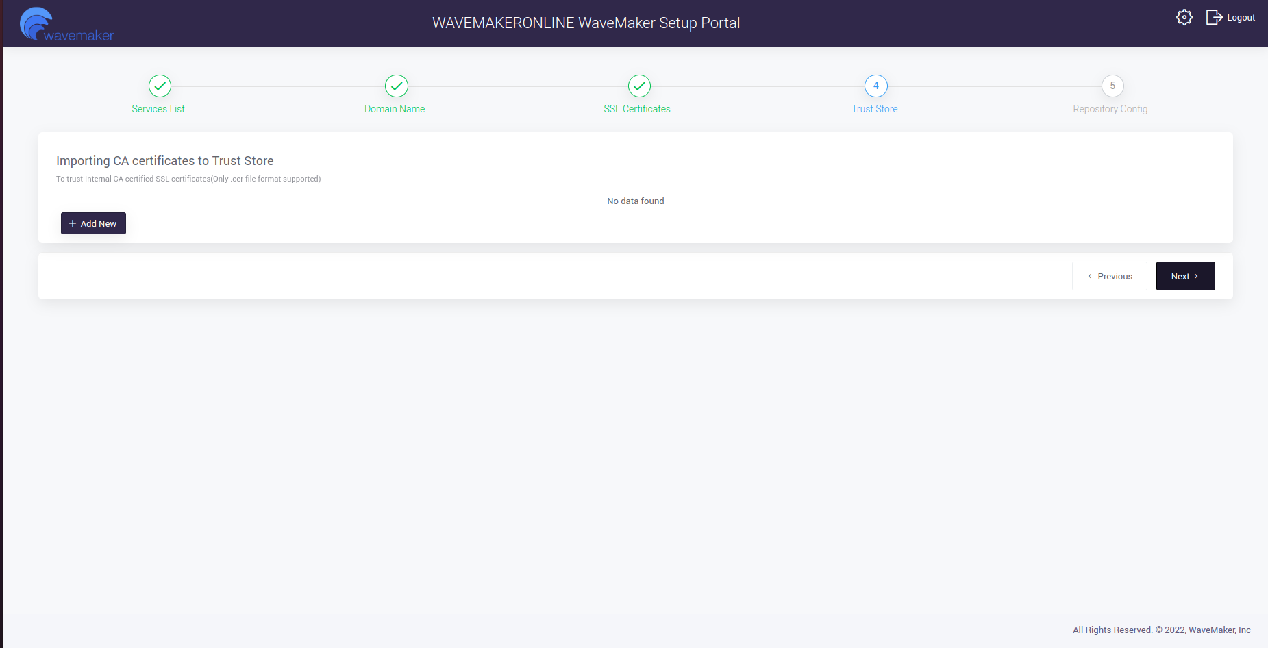 • Update the Trust Store by selecting on Add New.