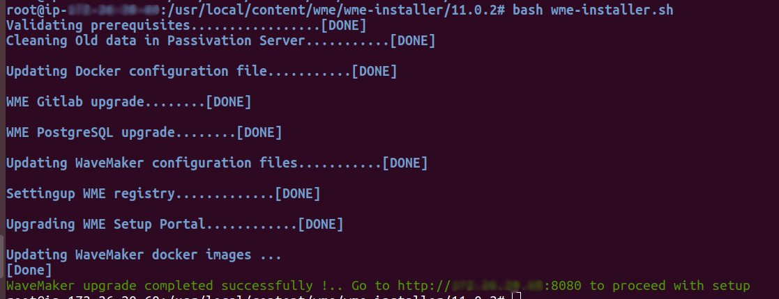 • After successful upgrade, the script will display a URL to perform the rest of the WME setup upgrade process.