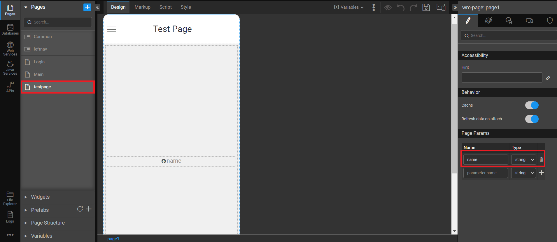Moreover, the URL scheme is not solely utilized for opening specific pages; it also enables the passing of parameters to those pages. Should you wish to pass parameters, such as ?name=tom, to the testpage, it is imperative to first establish parameters for that page within the WaveMaker app.